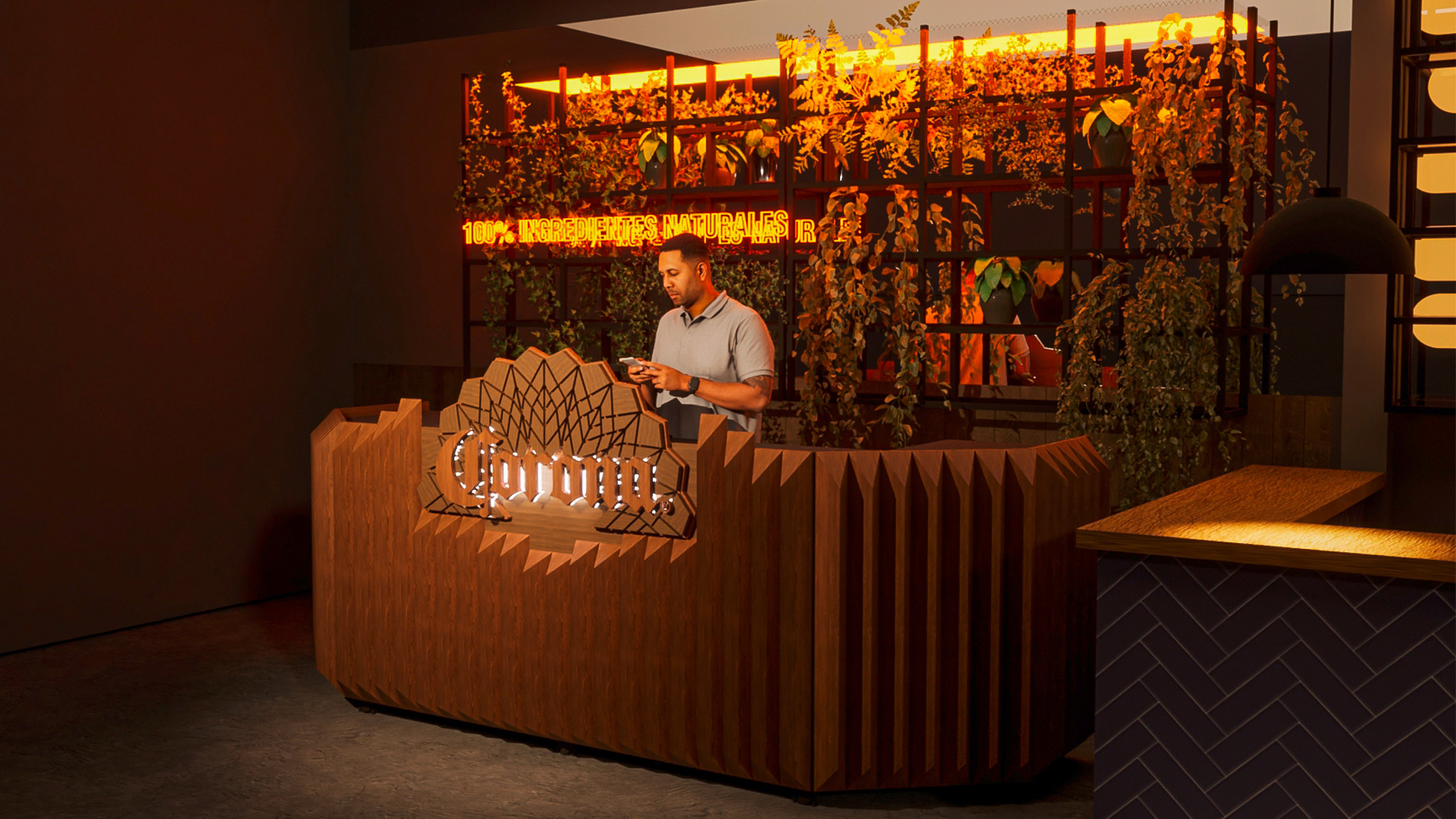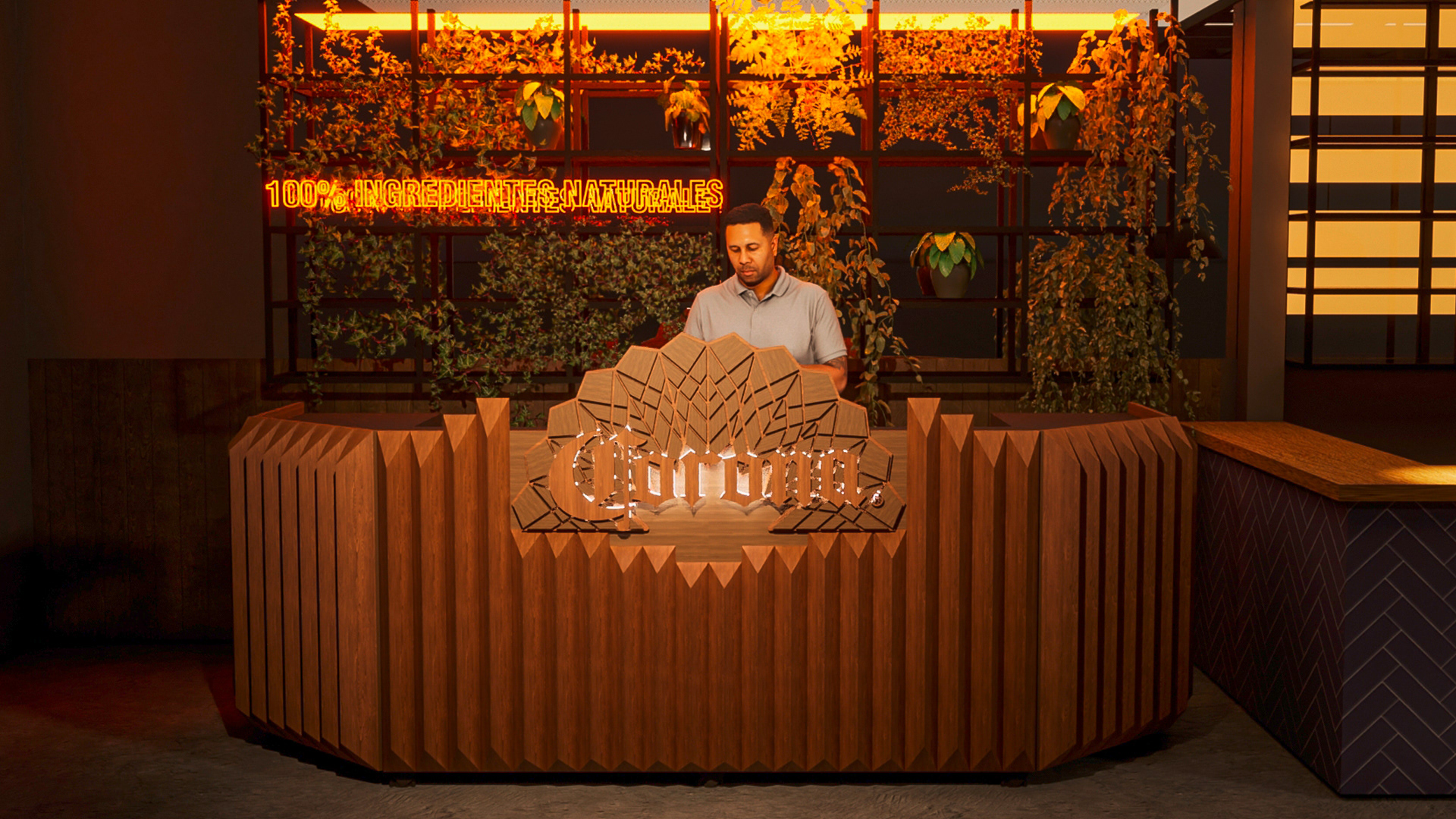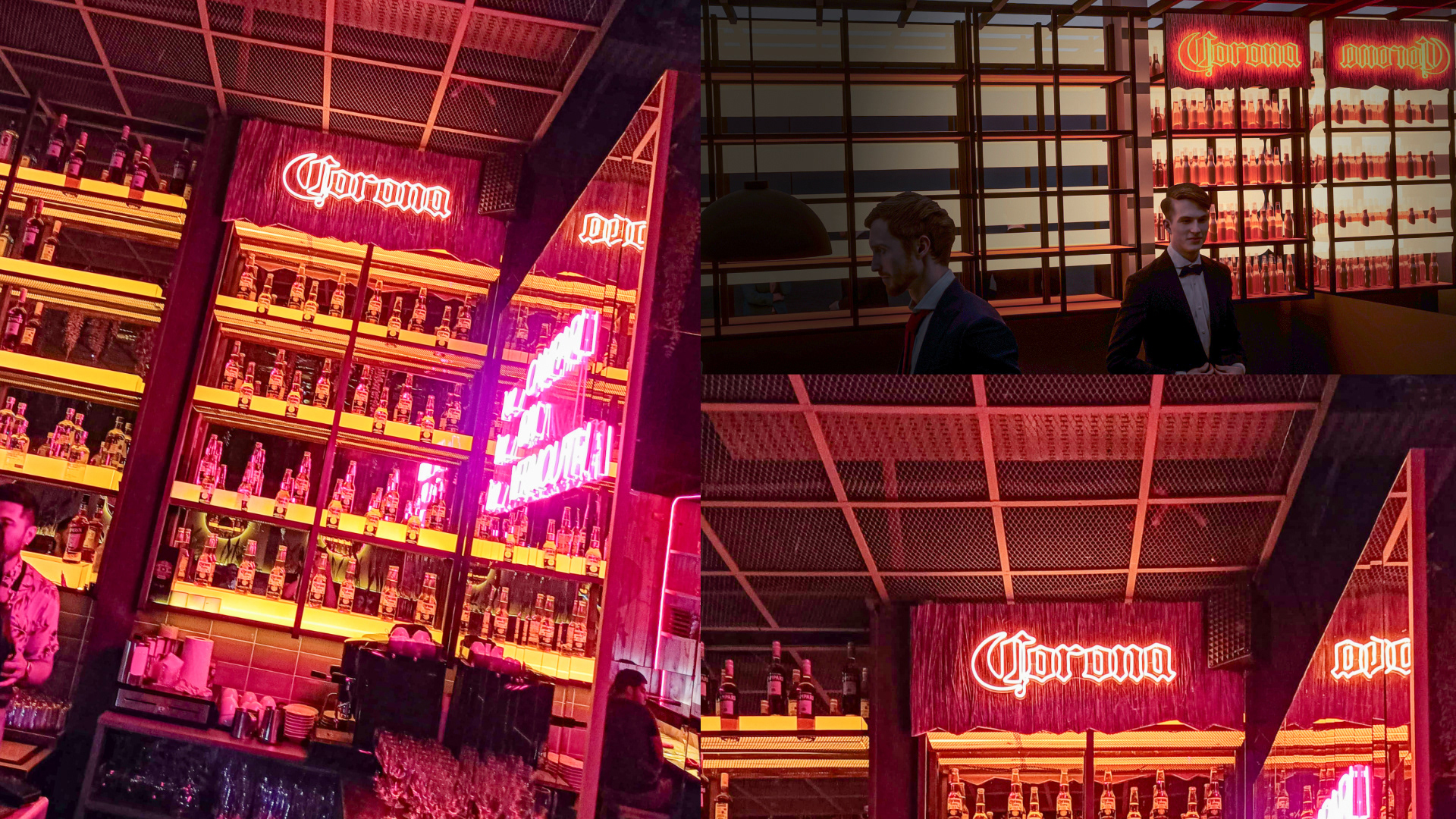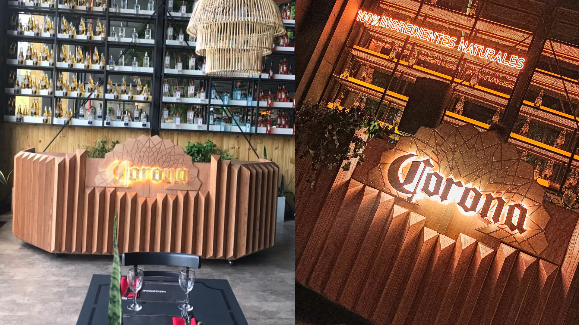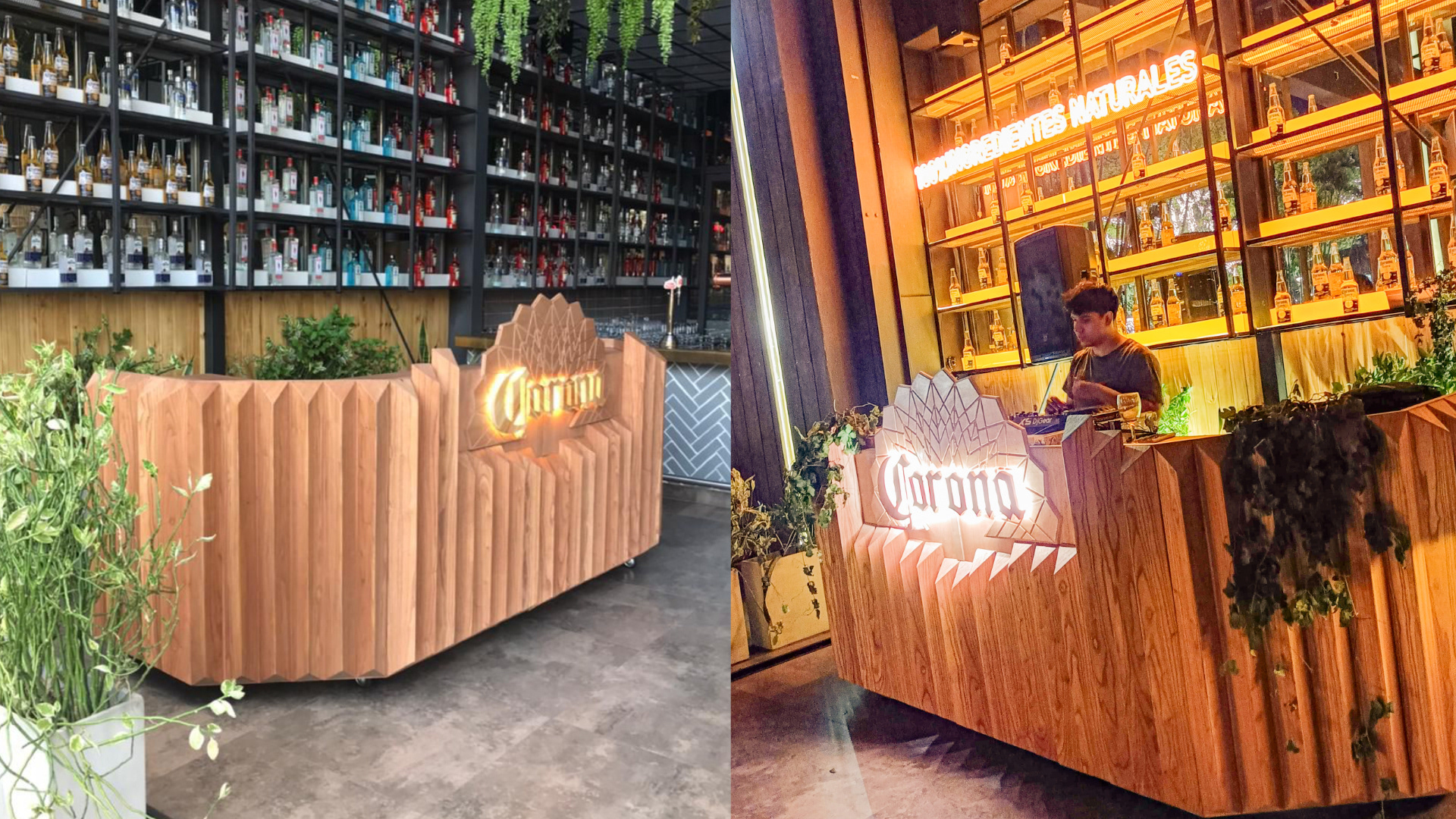 Diseño de barra DJ y botellero temático para Corona dentro de Negroni Grill, ubicado en el Sol. Trabajo colaborativo con 4retailpy.