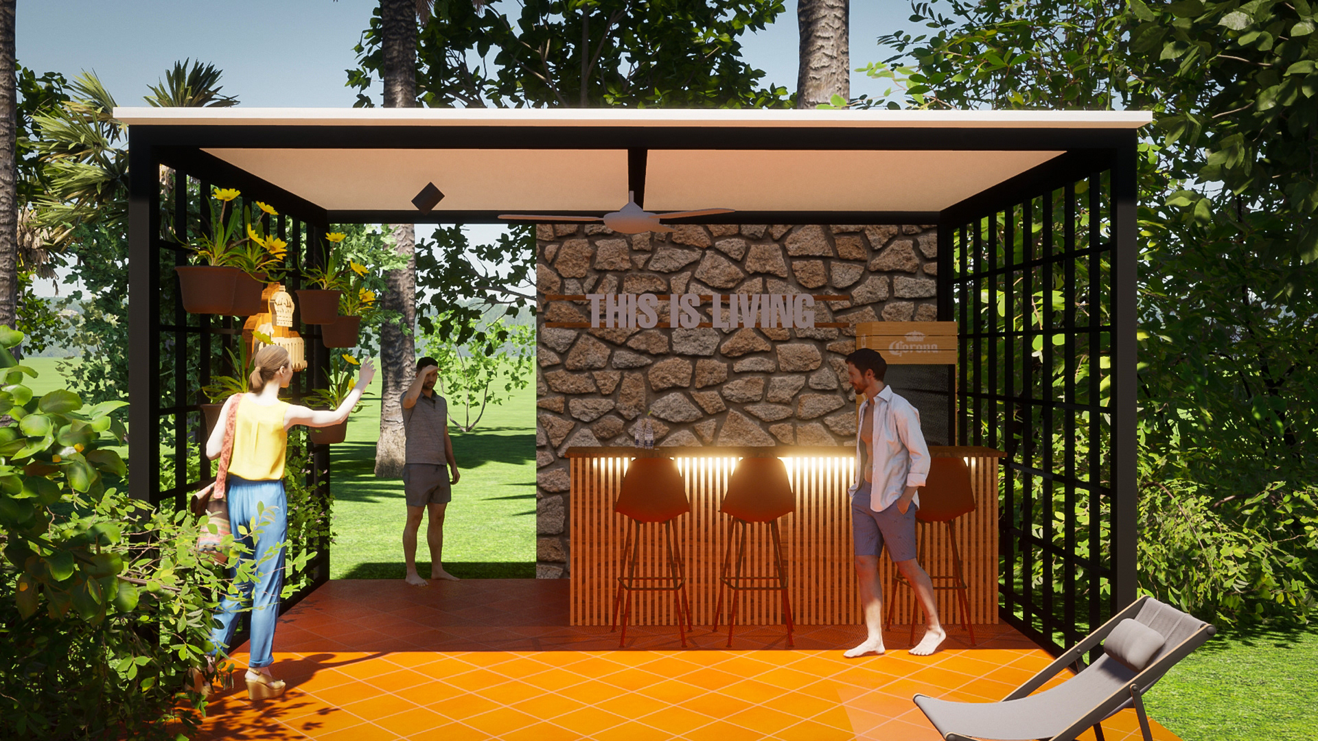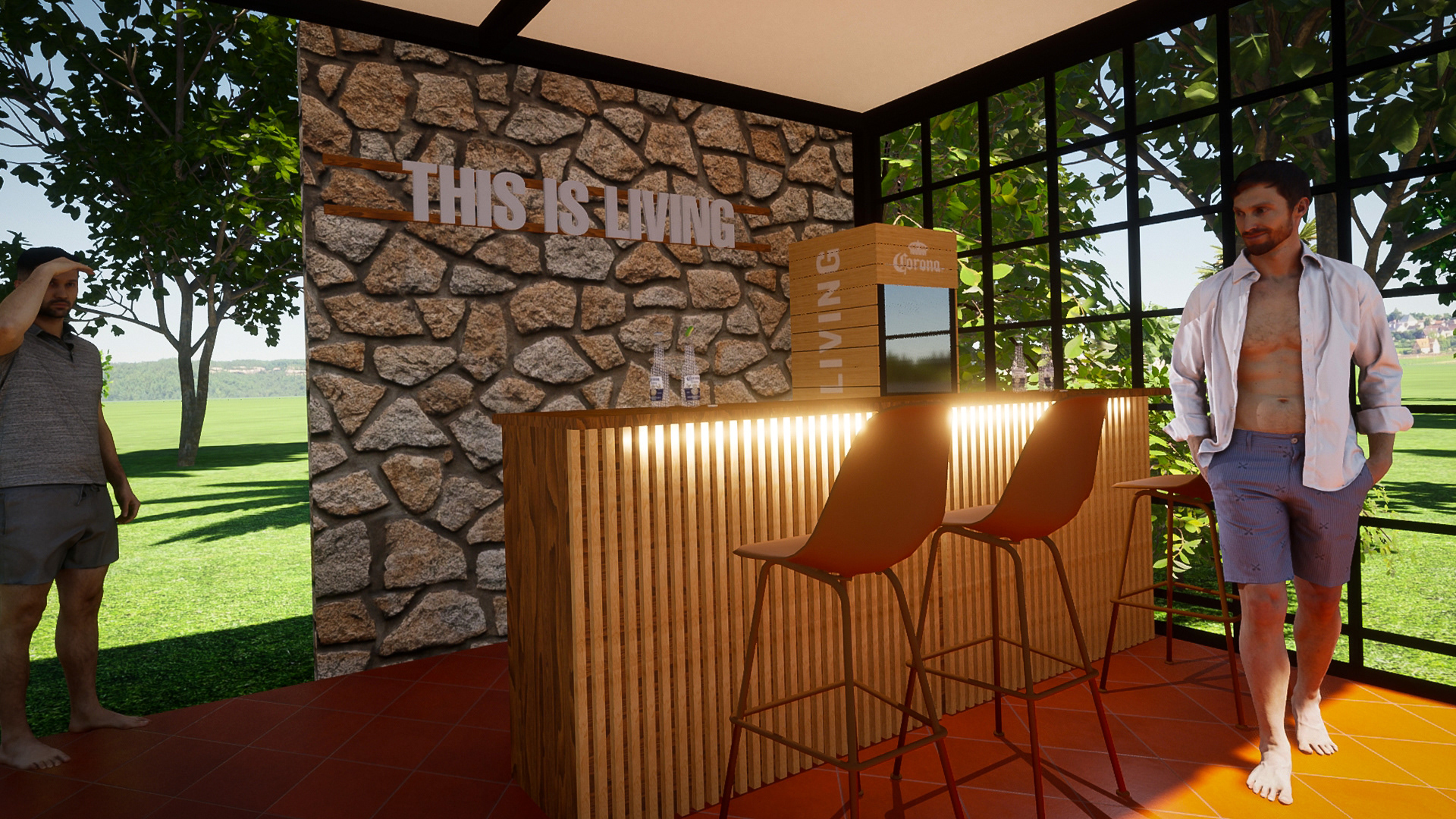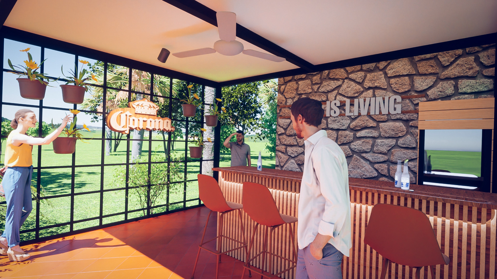 Diseño de barra CORONA junto con otros elementos de marca, en Tatano de San Bernardino. Trabajo colaborativo junto con Mauricio Elizeche y www.4retail.com.py en la ejecución.