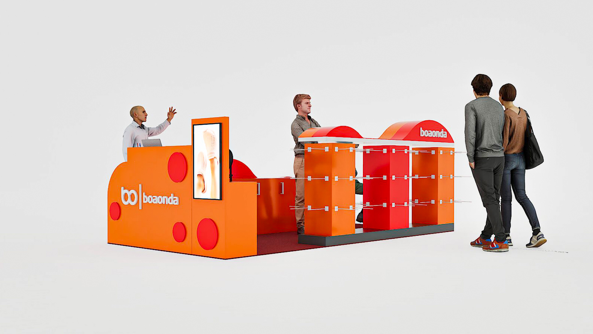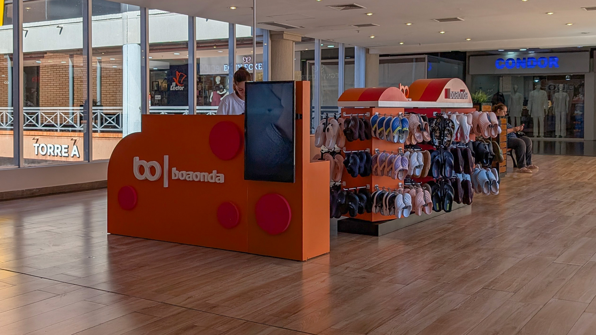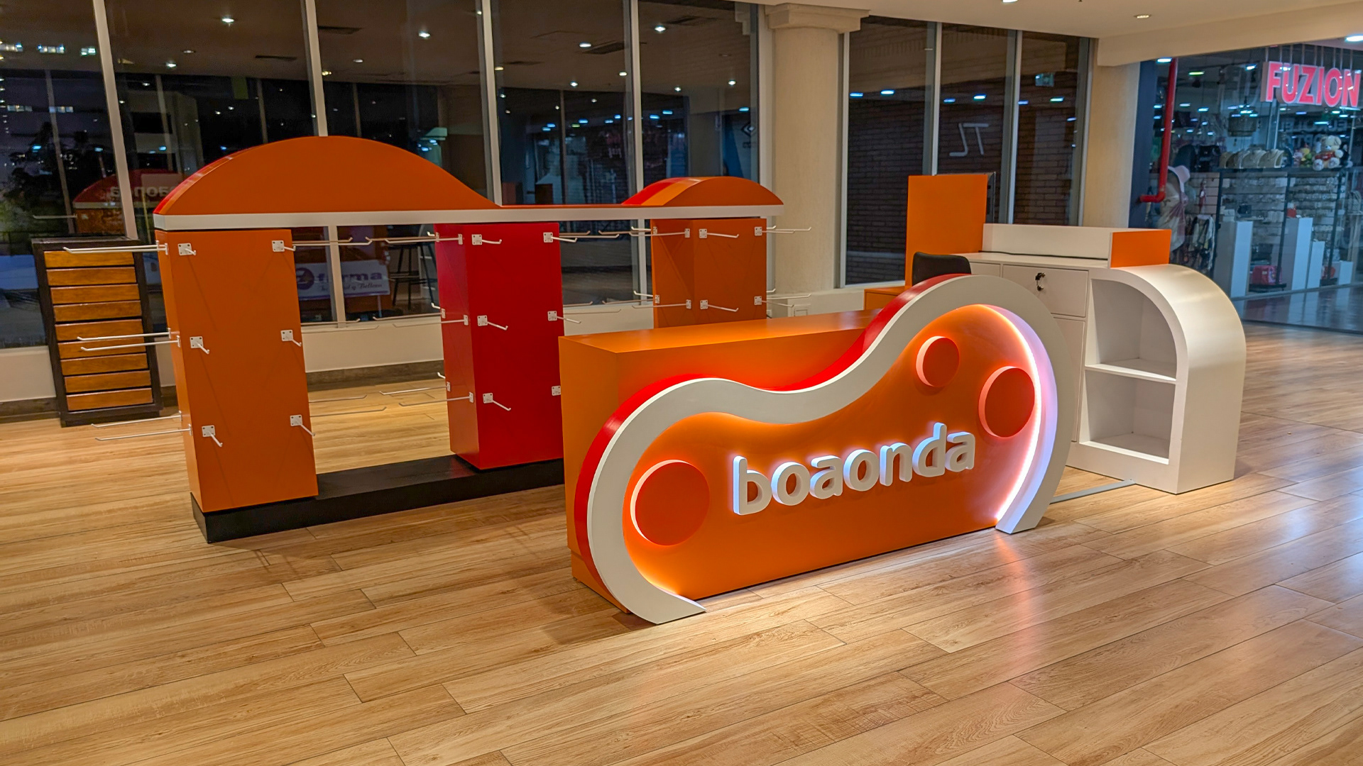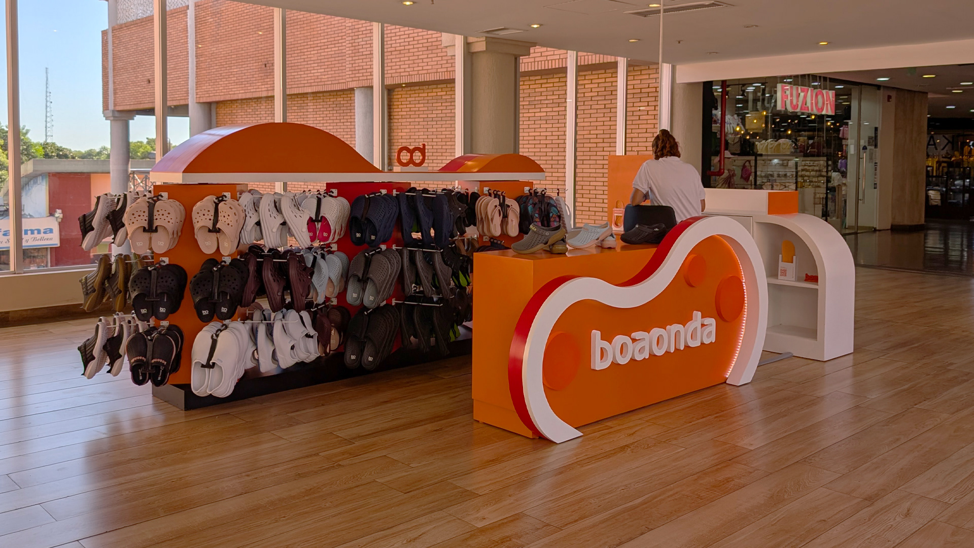 Diseño y producción de isla para Boaonda calzados, en su nuevo espacio del Shopping Multiplaza en Asunción.