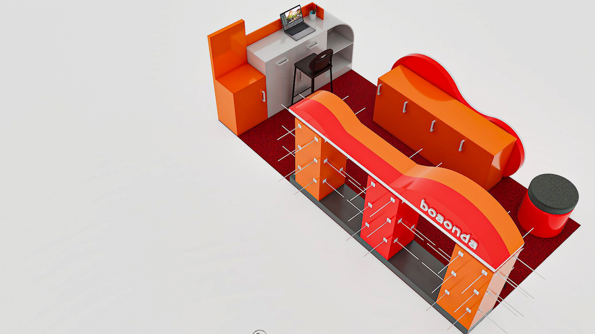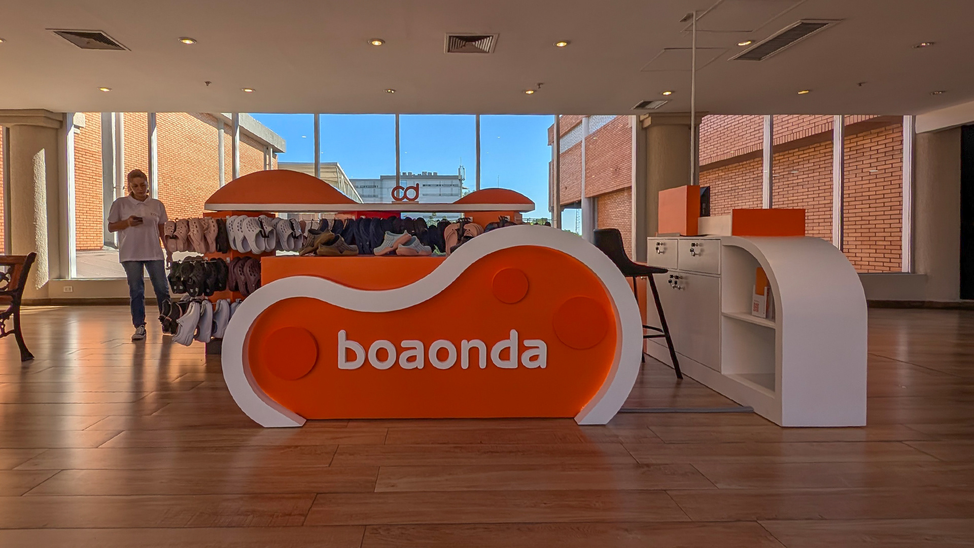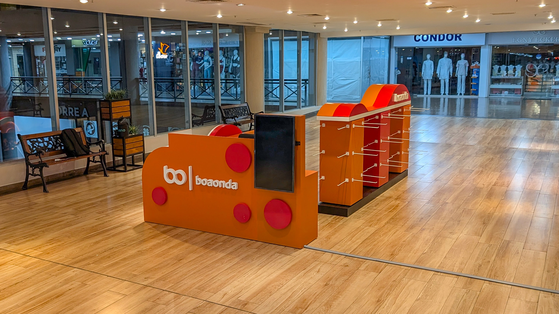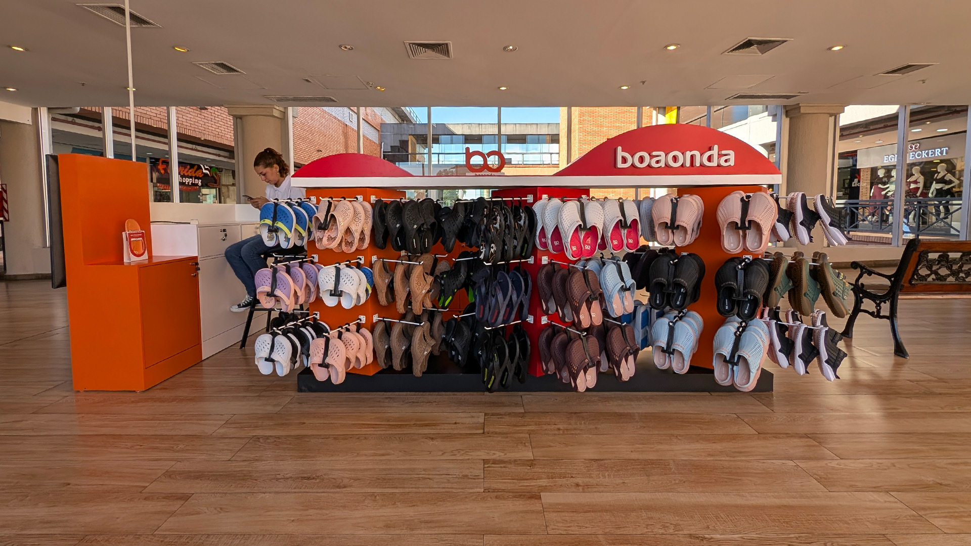 Diseño y producción de isla para Boaonda calzados, en su nuevo espacio del Shopping Multiplaza en Asunción.