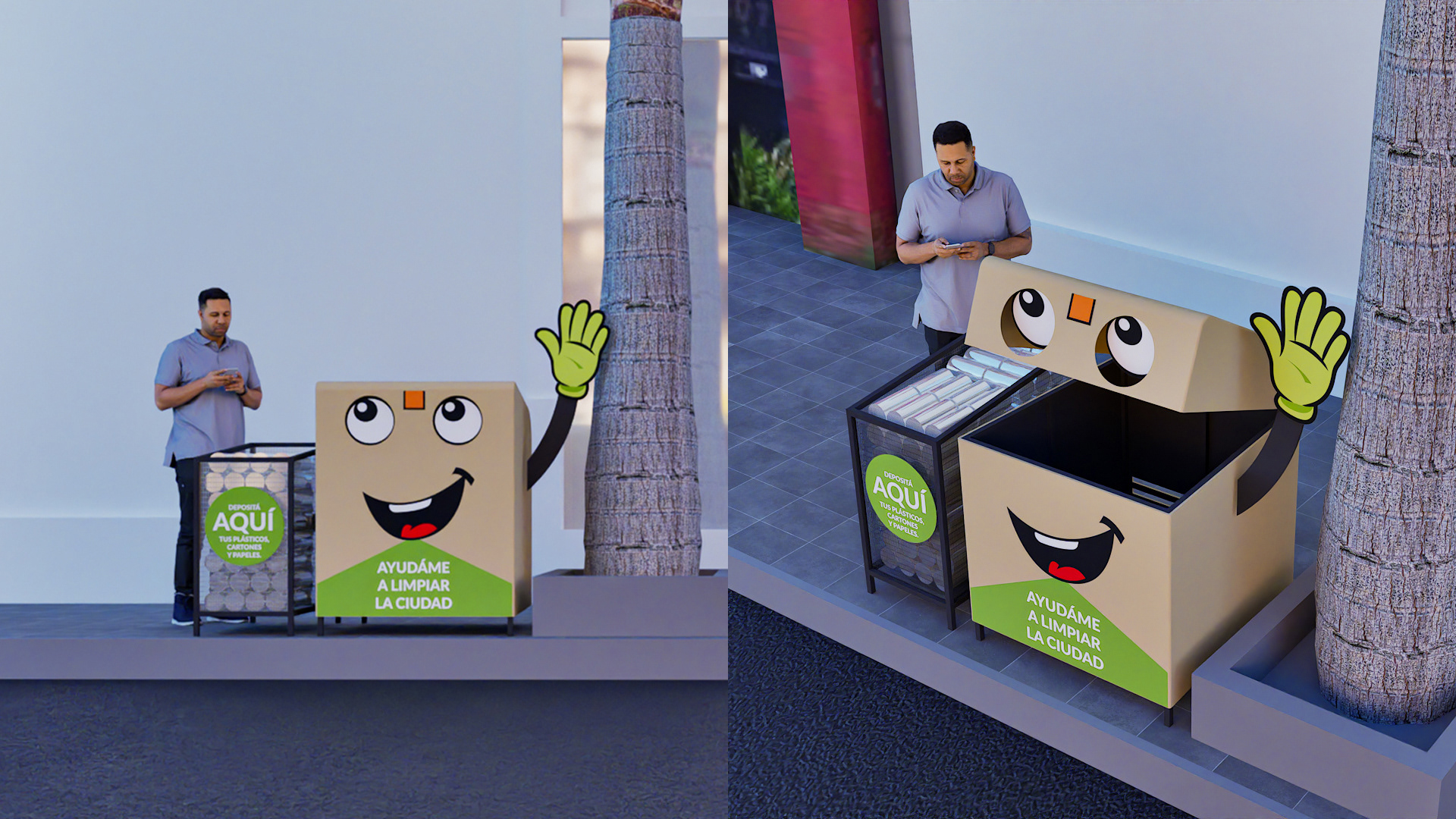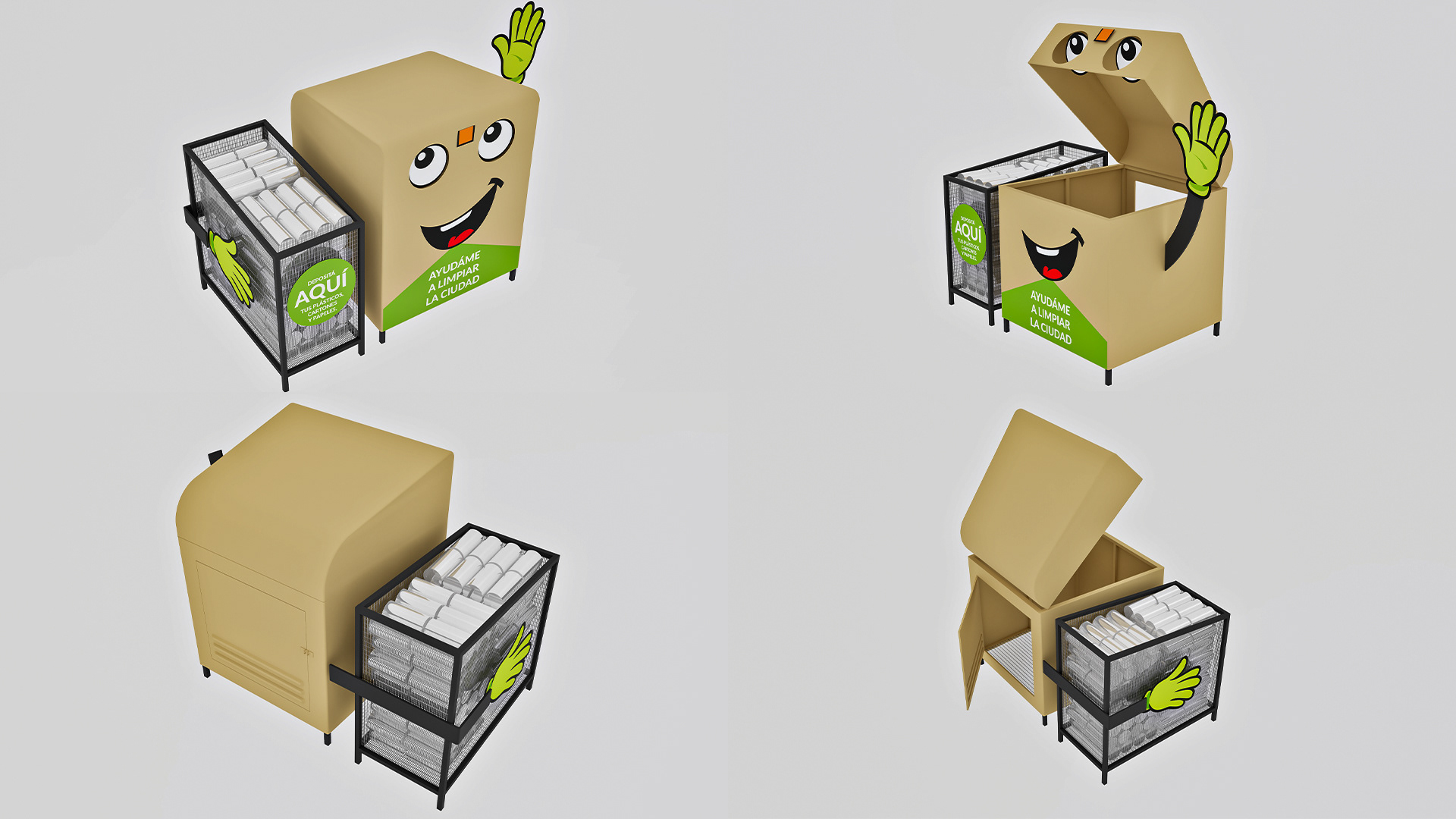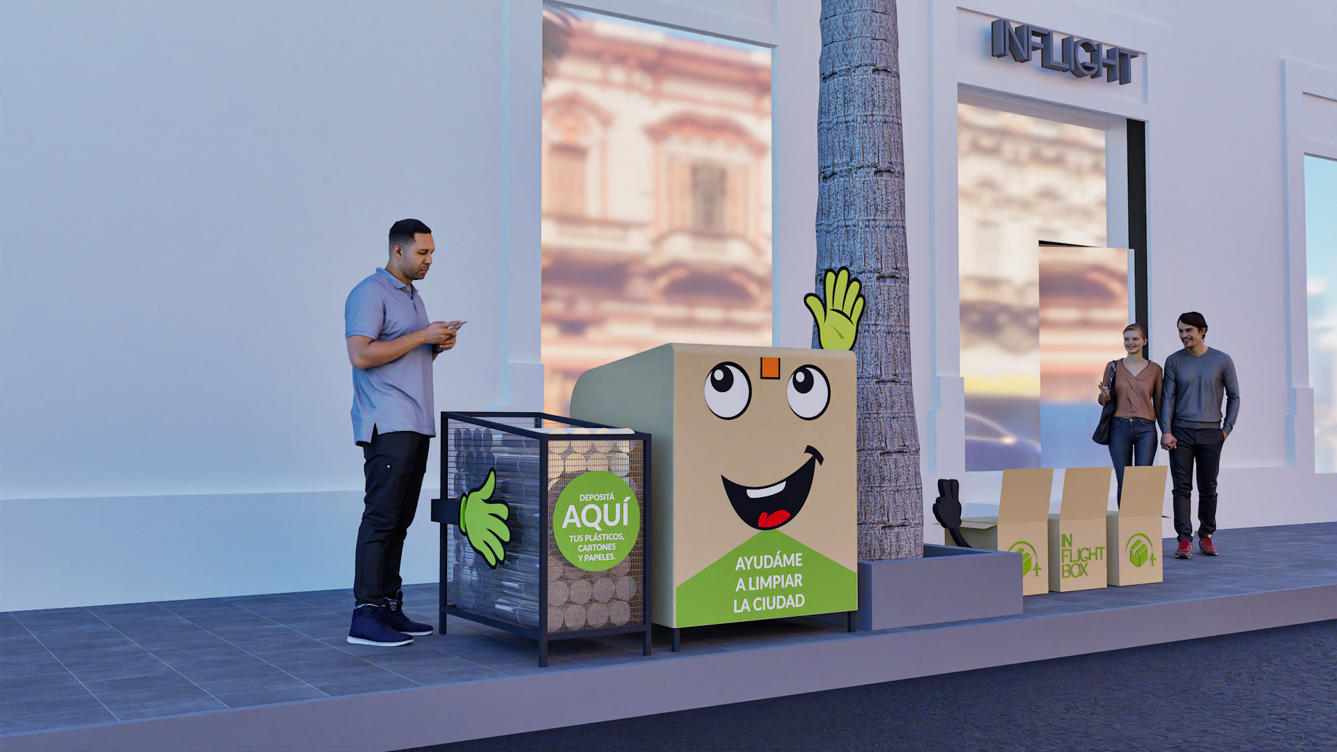Diseño y producción de Boxy basurero para INFLIGHTBOX, preparados para desechos orgánicos y reciclables.