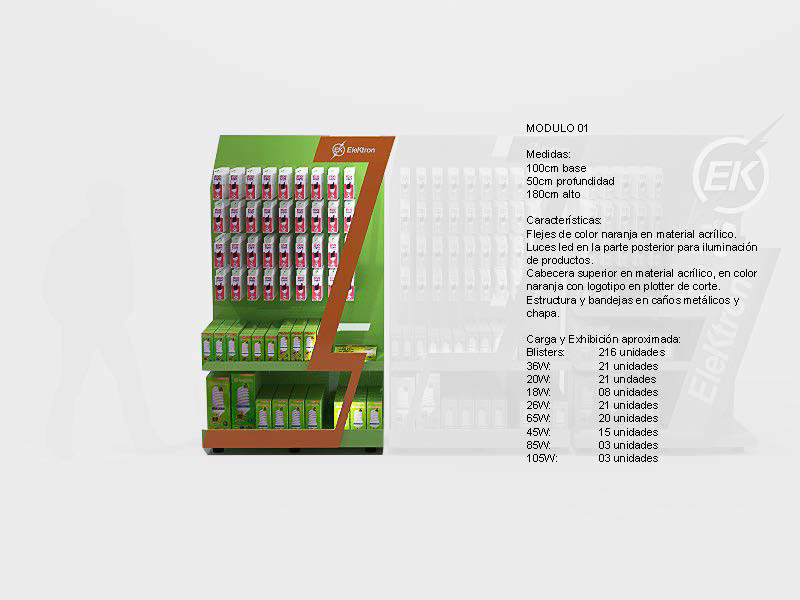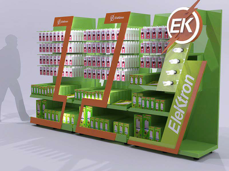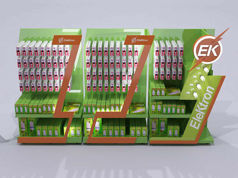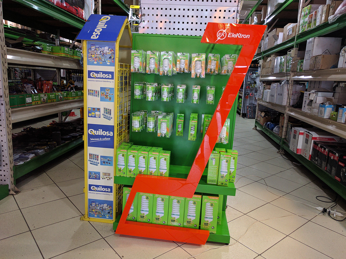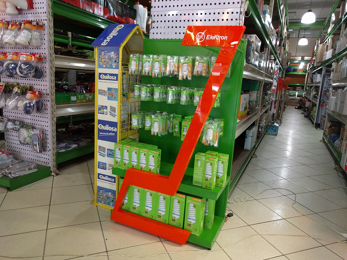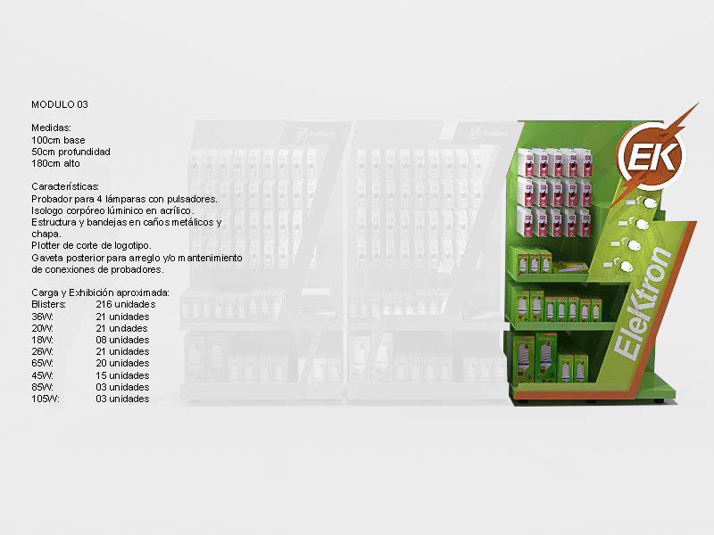 Exhibidores modulares para la marca Elektron, a ser utilizados en Ferreterias y Casas de Electricidad.