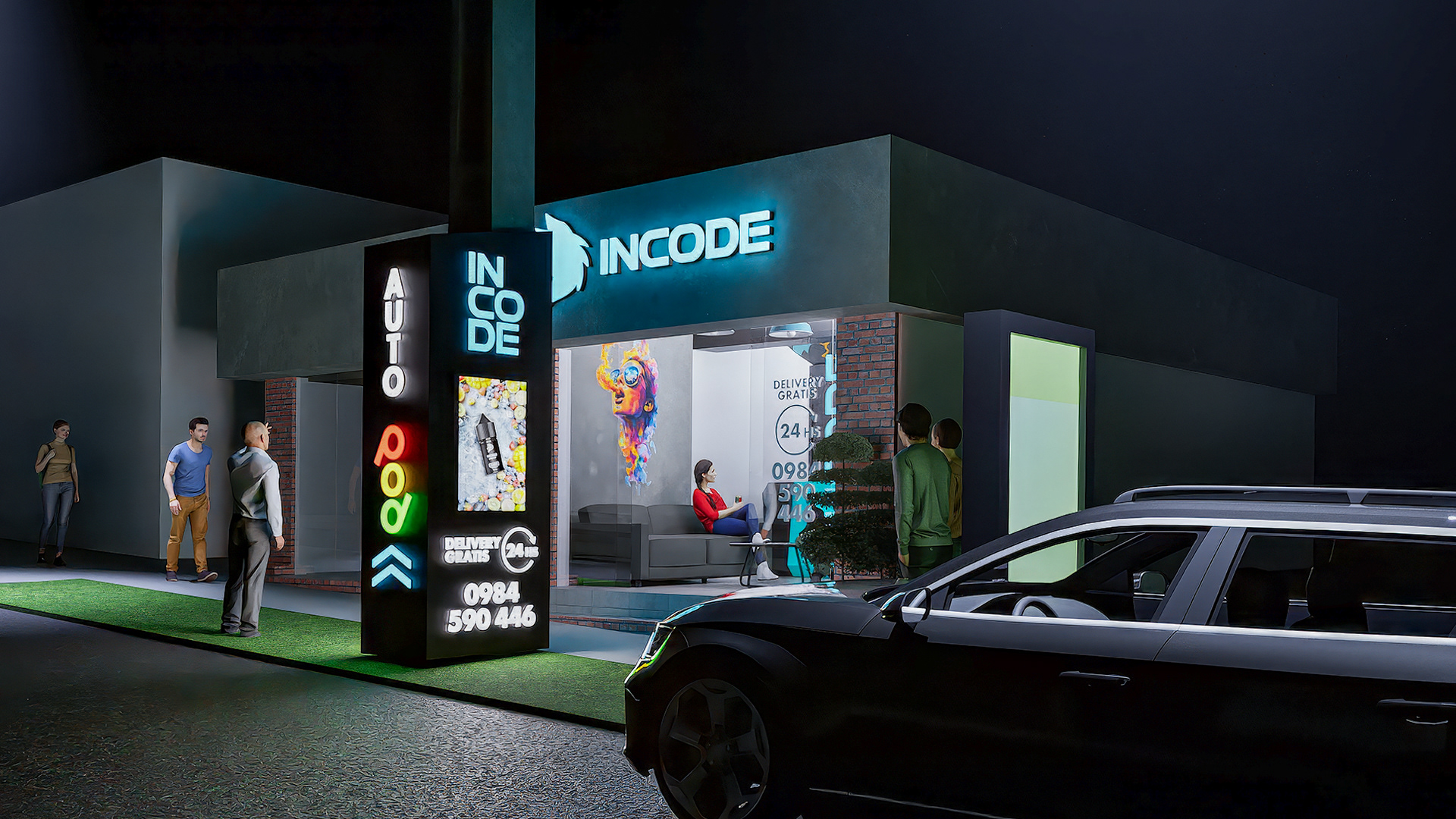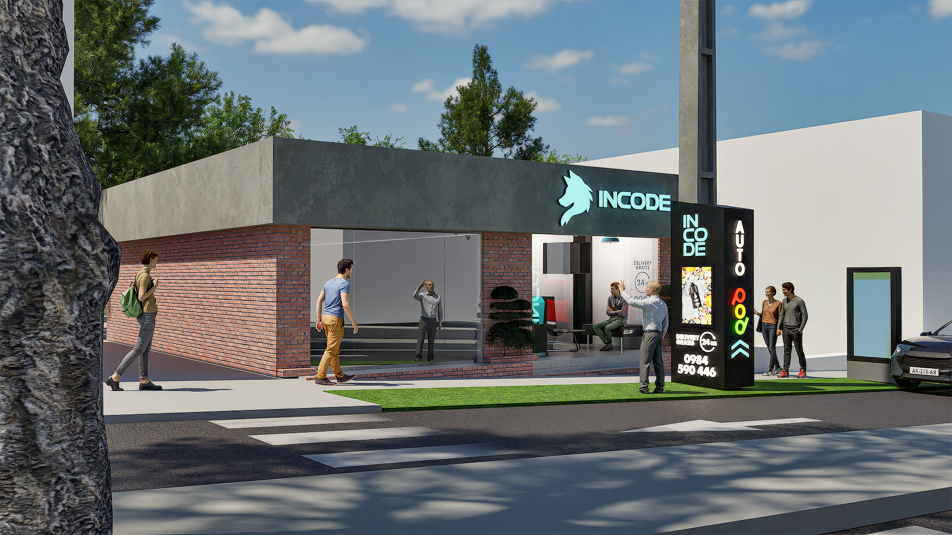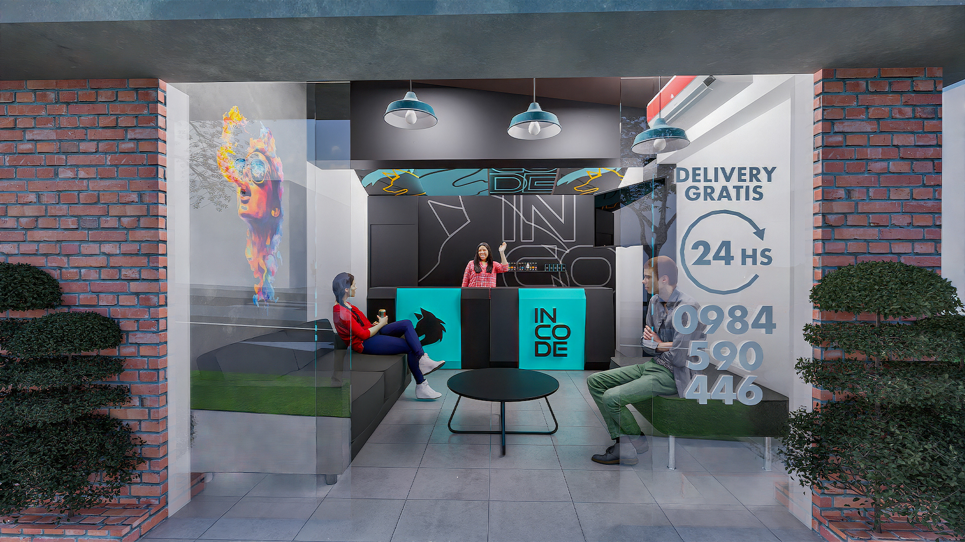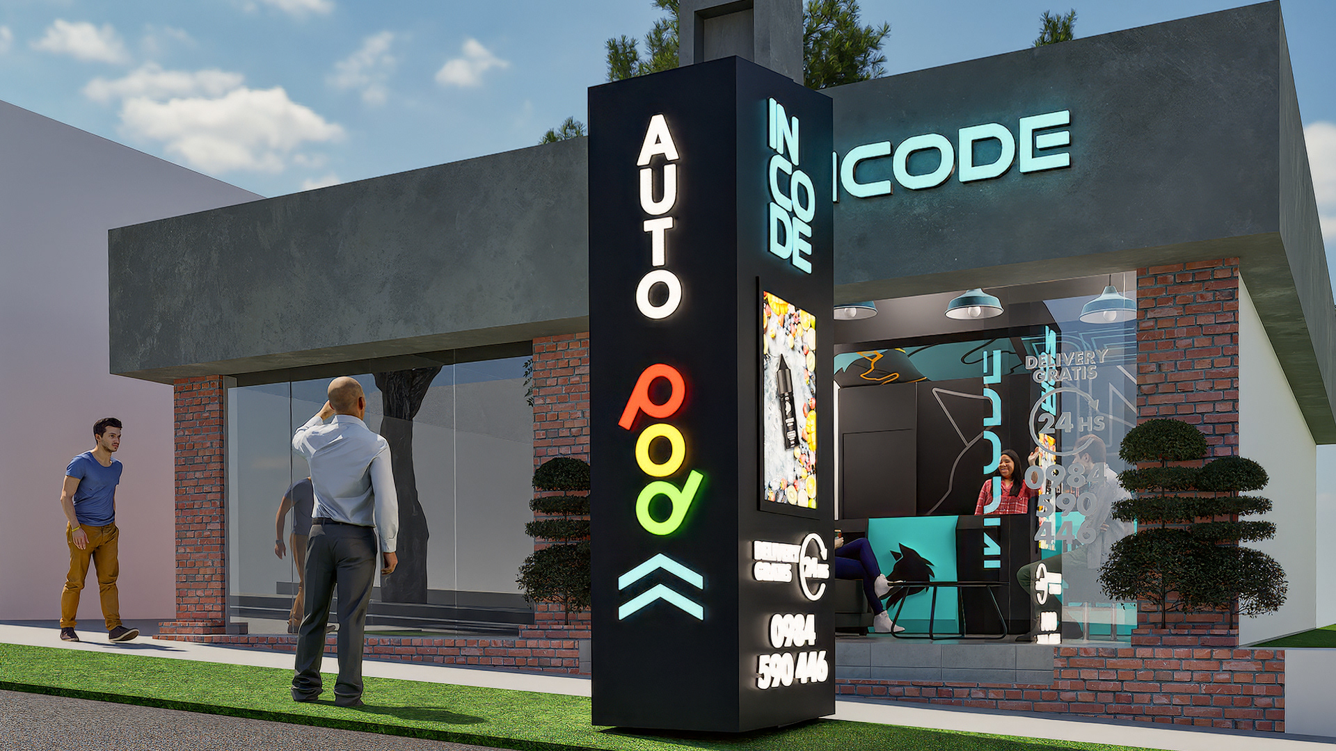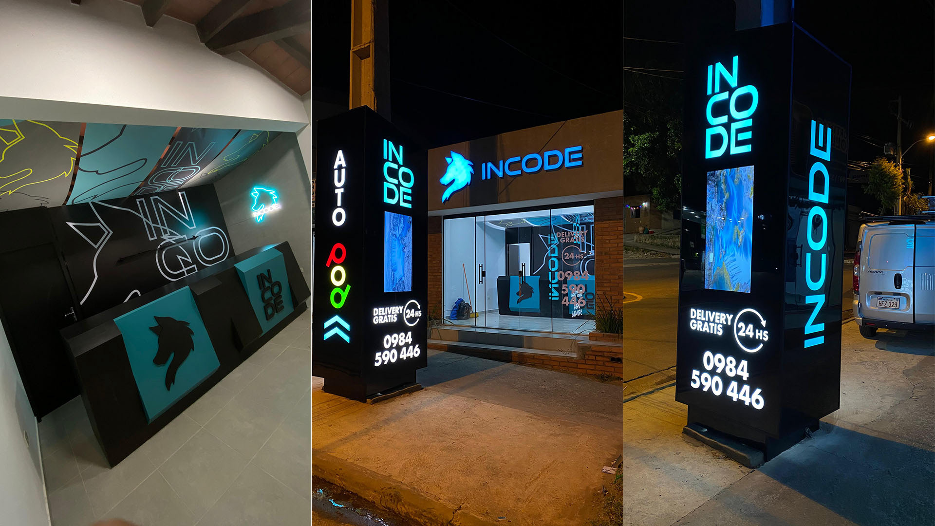Diseño de local comercial para INCODE, ubicado en la ciudad de San Bernardino, Paraguay. Producción junto con Advance Industria Publicitaria.
