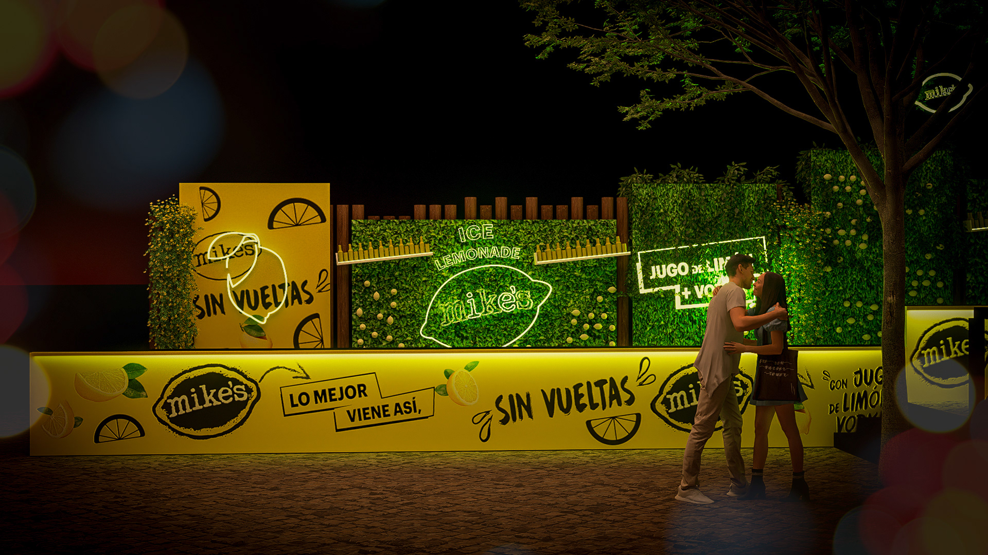 Diseño de barras, túnel y ambientaciones varias para Mikes, dentro de TAO Sanber. Trabajo colaborativo y producción a cargo de 4trade.