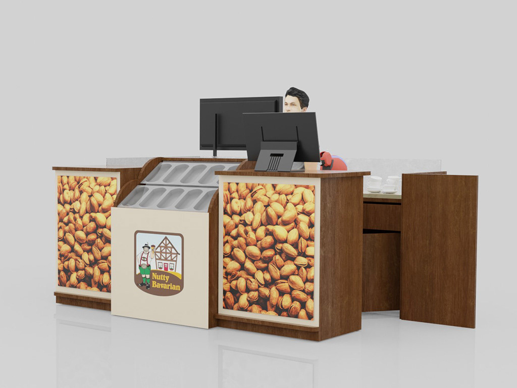 Diseño para ampliación y actualización de stand para Nutty Bavarian Paraguay, ubicado en el Shopping del Sol.