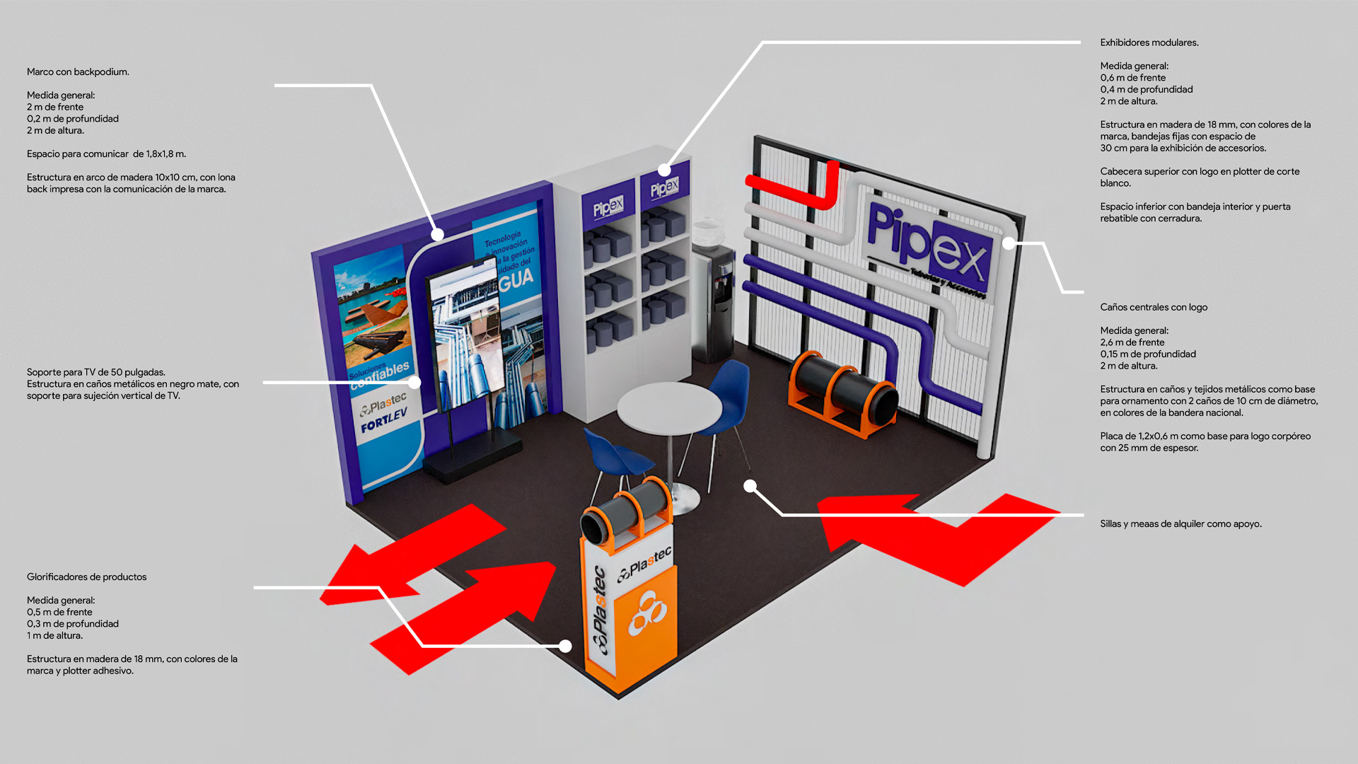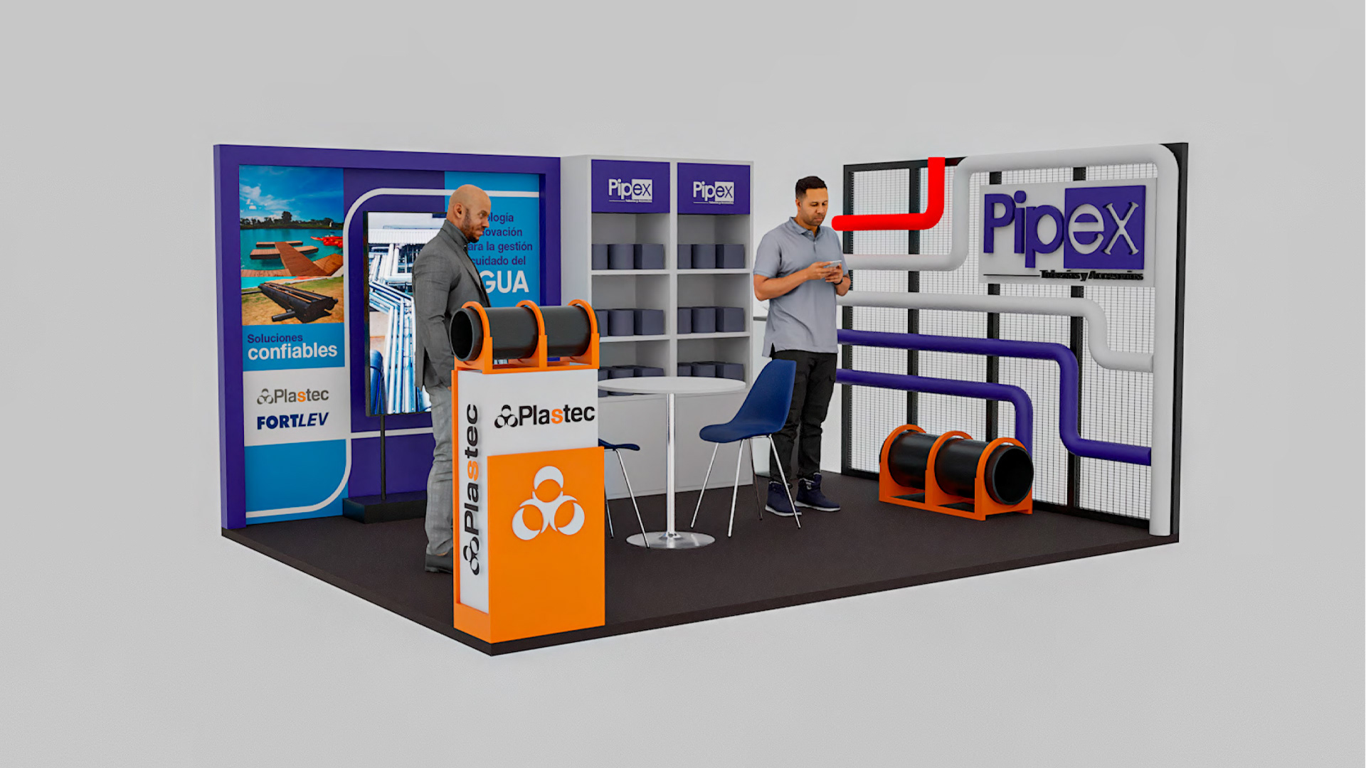 Diseño y producción de stand Pipex, empresa nacional productora de tuberías en PVC, para la Expo Agrodinámica 2025.