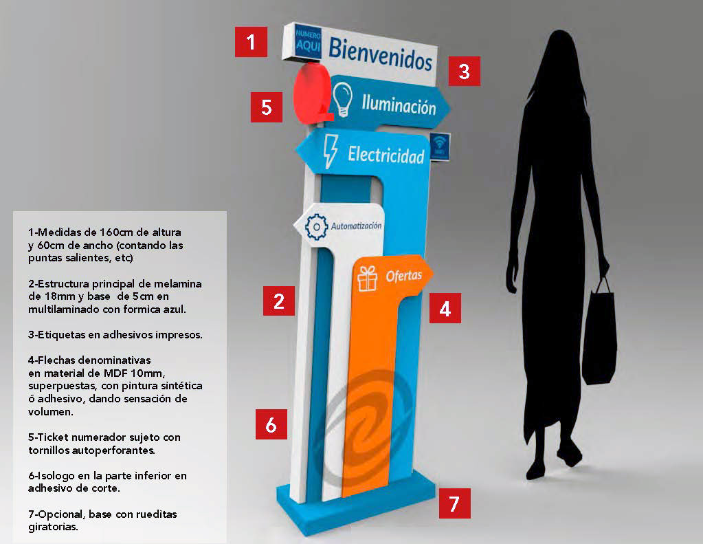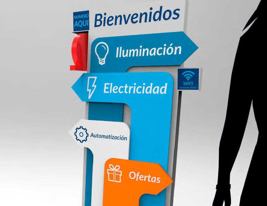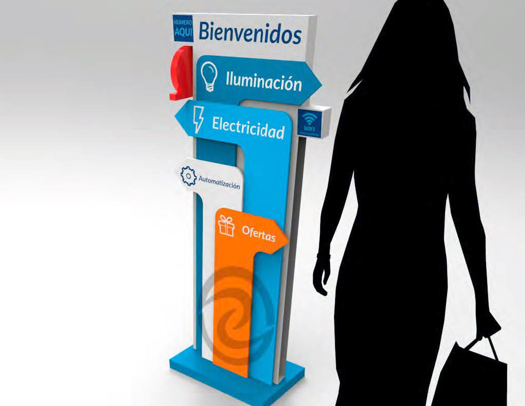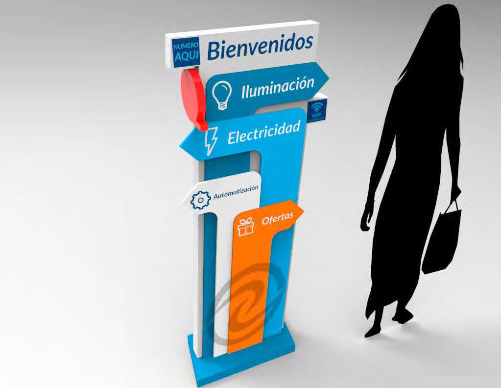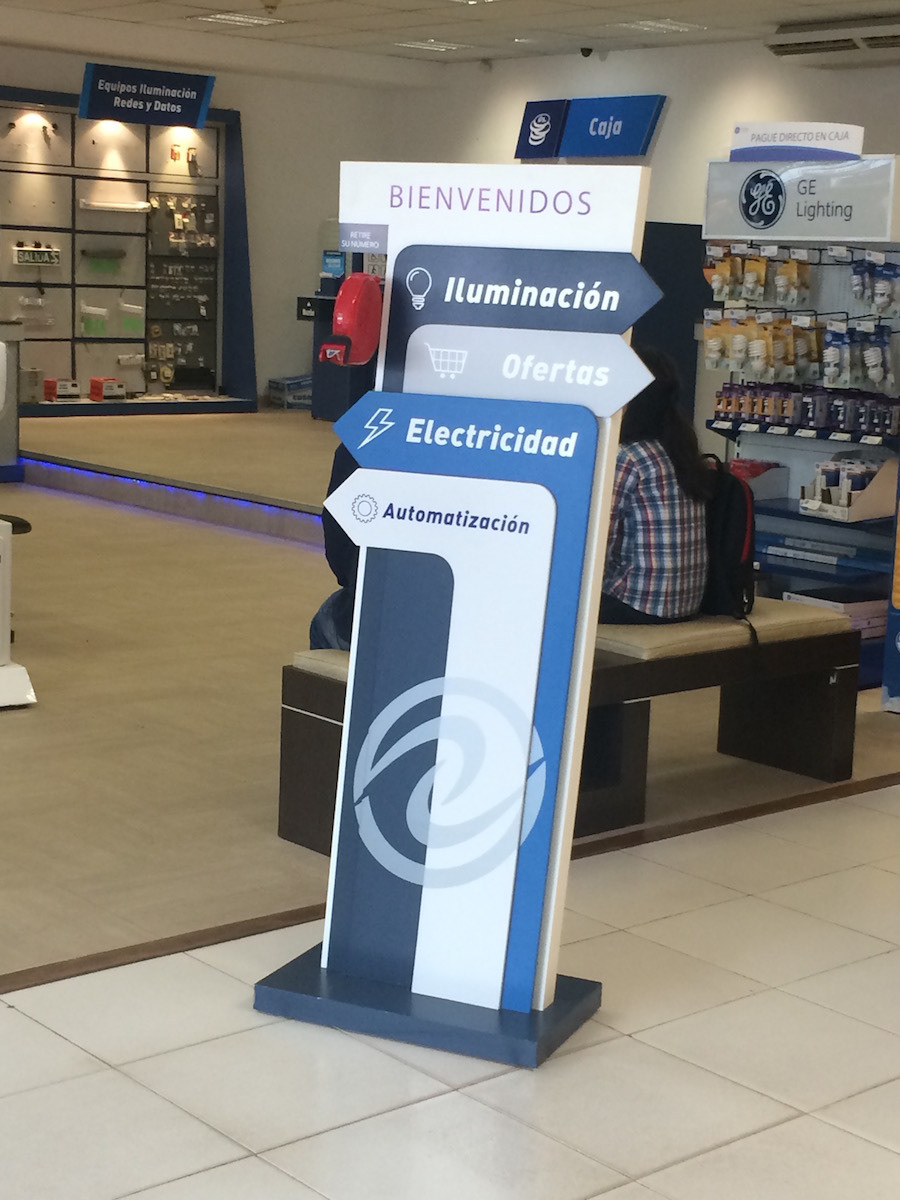 Totem señalizador utilizado en sucursales de Electropar, empresa del rubro electrico.