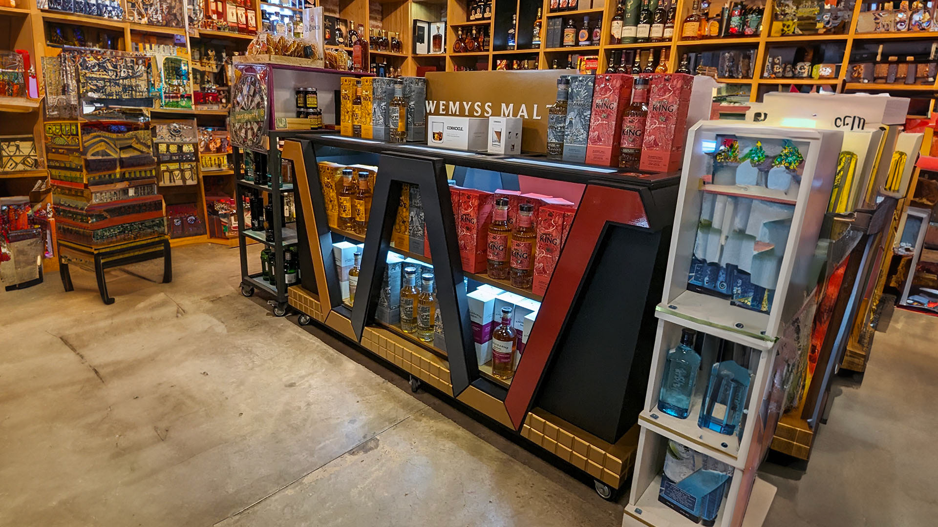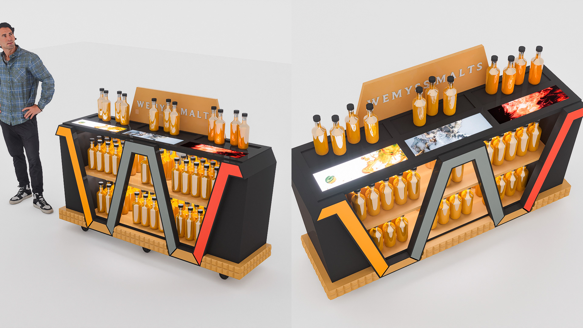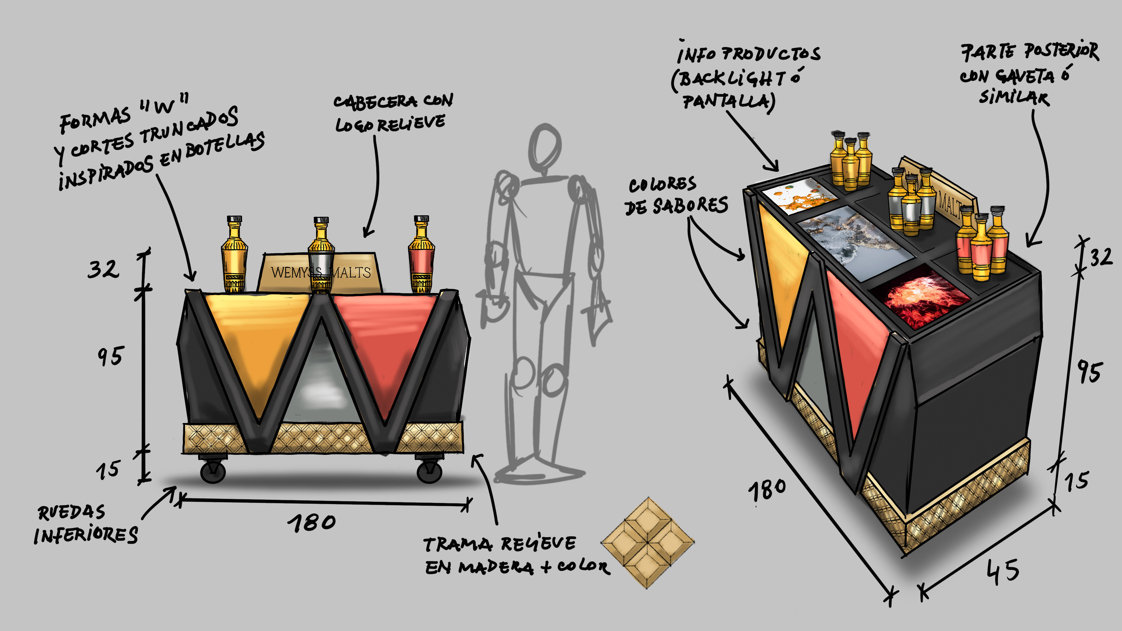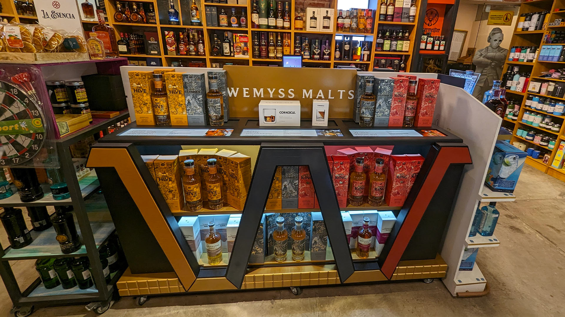Diseño de exhibidor para whisky WEMYSS, ubicado en Bodega Boutique. Trabajo en conjunto y producción a cargo de 4trade.